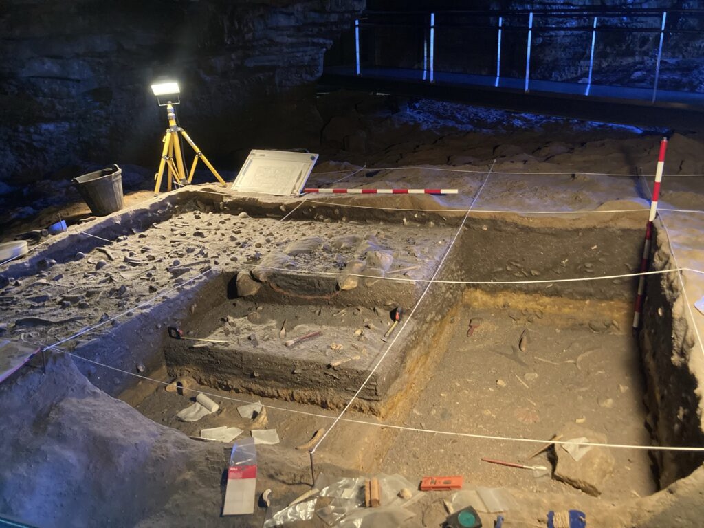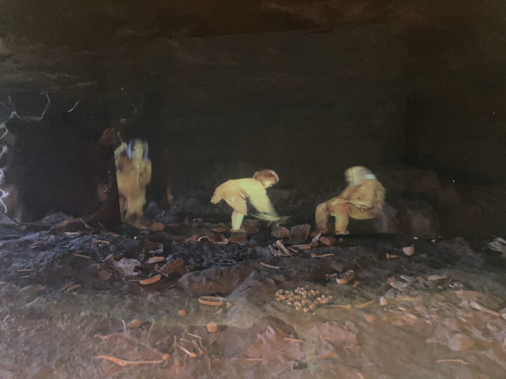 Ved indgangen til hulen så vi en videoinstallation som viste hvordan den forreste del af hulen blev brugt til samlingssted, ildsted og arbejdspladser, alt dette har arkæologerne kunnet udgrave og rekonstruere da hulen som tidligere nævnt blev forseglet af et stenskred.